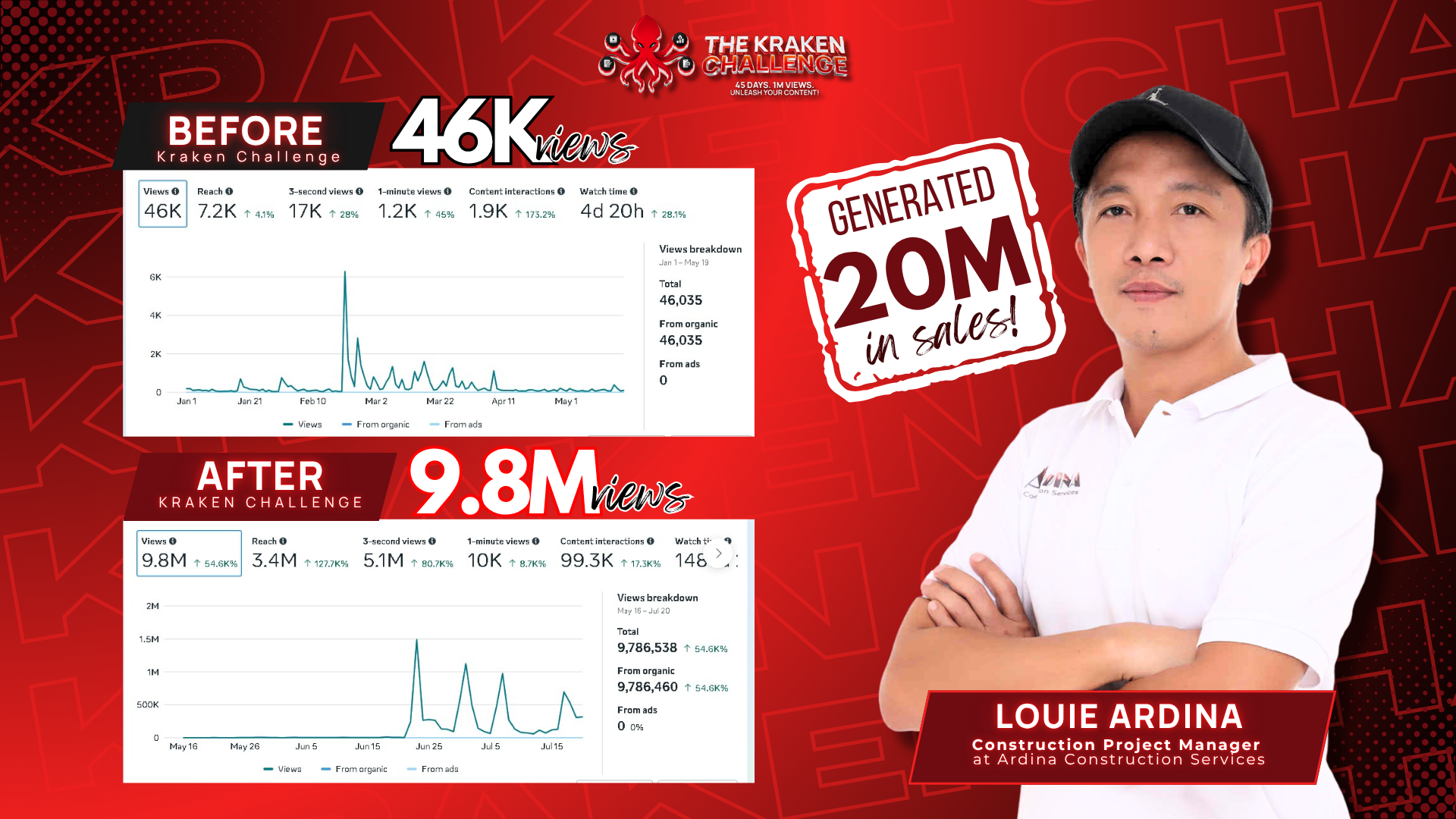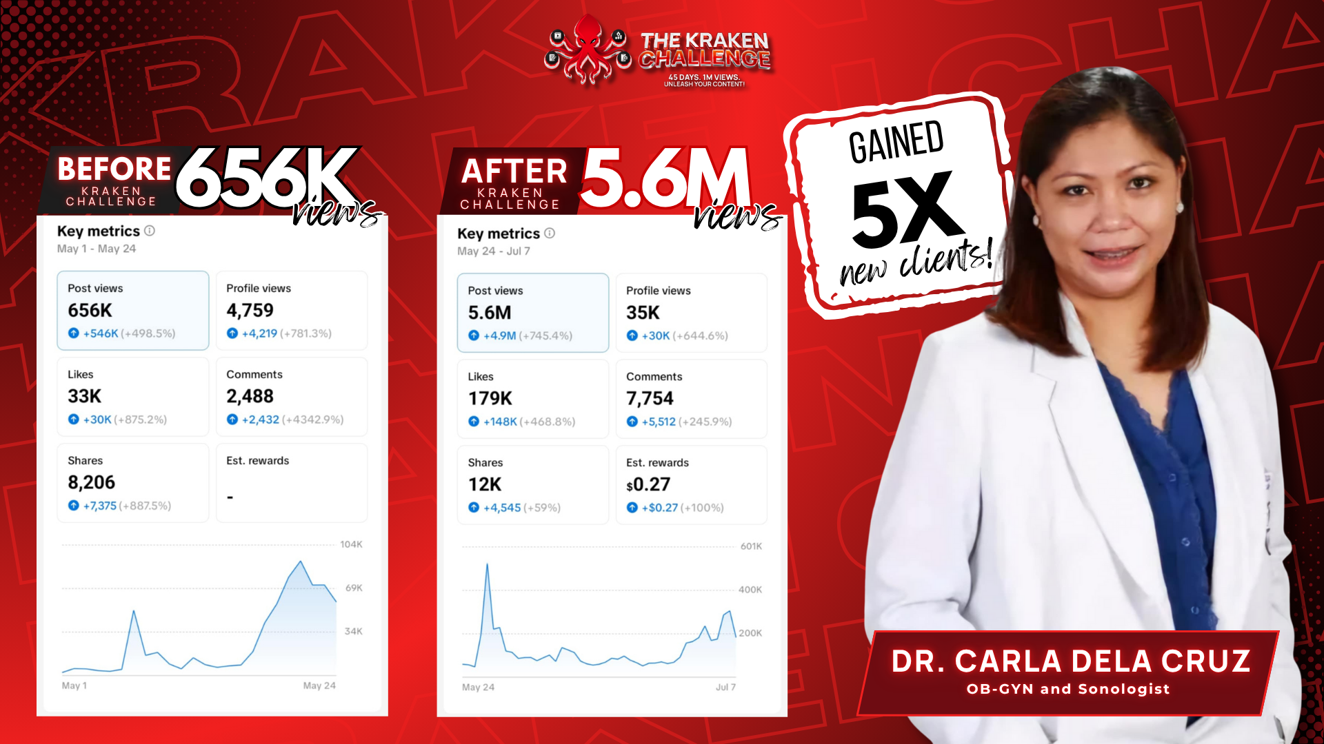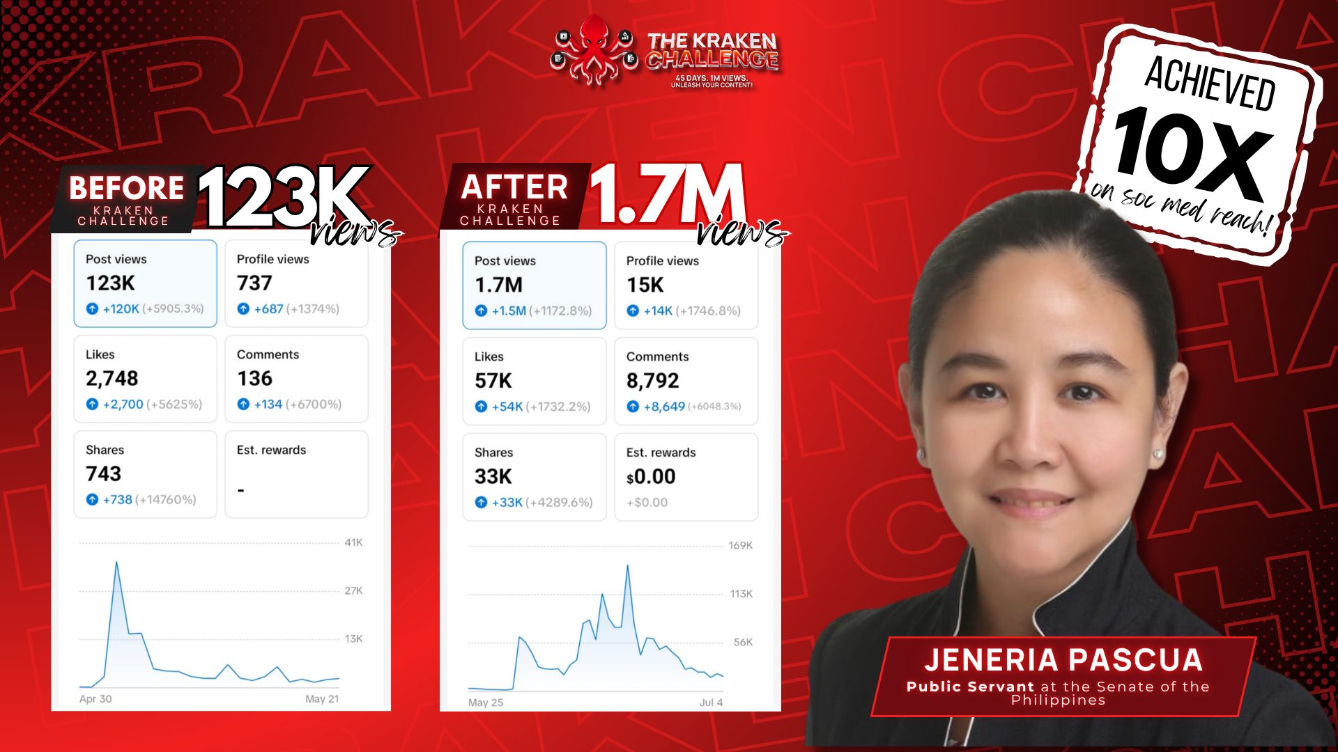 A 45-day, high-accountability content execution program with coaching, feedback loops, and a competitive community designed to help you hit 1M views and drive sales fast plus a chance to win up to ₱950,000 as the Kraken Champion.